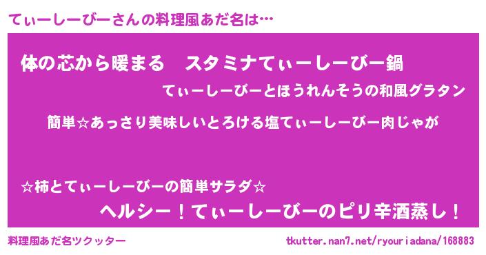 | 意味不明あだ名 | 『永久保存てぃーしーびー』 |