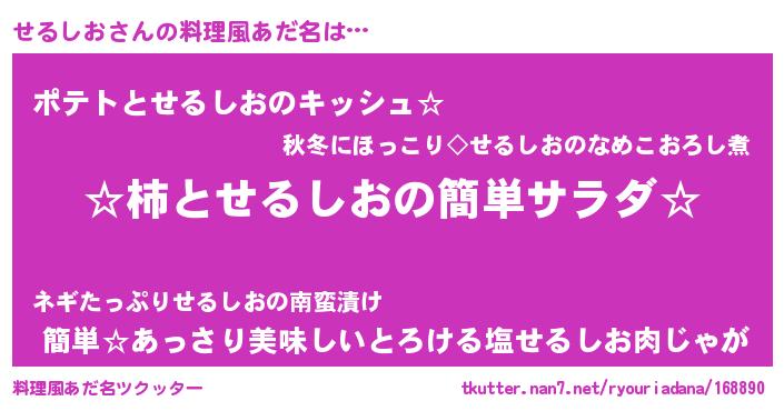 | 意味不明あだ名 | 『とにかく怪しいせるしお』 |