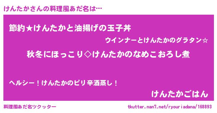 | 意味不明あだ名 | 『ペロリンけんたか』『自称けんたか』 |