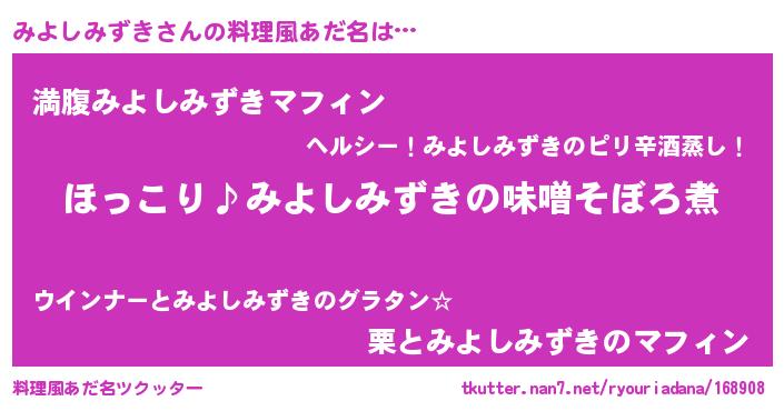 | 胡散臭い通販商品みたいなあだ名 | 『必ず成功するブレスレット…その名も「みよしみずき」』 |