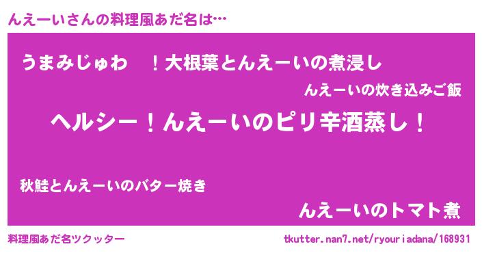 | 男性向けラノベタイトル風あだ名 | 『Re:んえーいから始める異世界生活』 |