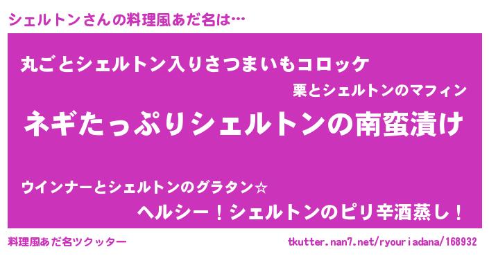 | 意味不明あだ名 | 『ペロリンシェルトン』『自称シェルトン』 |
