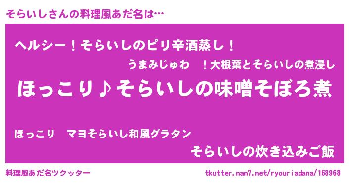 | ヘコむあだ名 | 『そらにー』『酢こんぶ』『そらお』 |