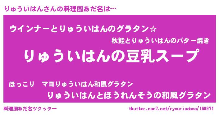 | 胡散臭い通販商品みたいなあだ名 | 『信頼と実績のサプリメント…その名も「りゅういはん」』 |