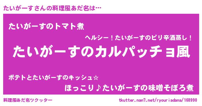 | ヘコむあだ名 | 『たいもー』『たいお』『なまこ酢』 |