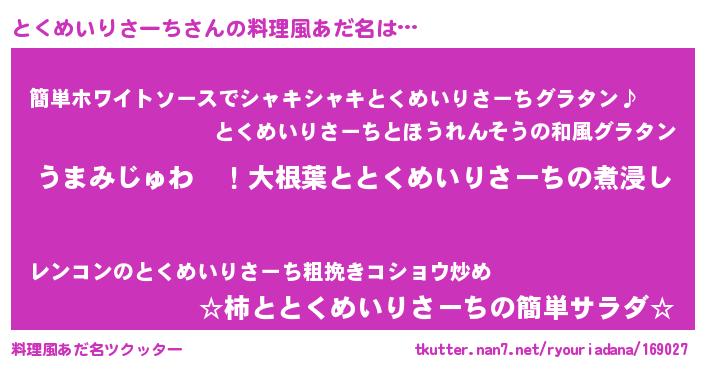 | 胡散臭い通販商品みたいなあだ名 | 『運命の人と巡り会える高級そうな皿…その名も「とくめいりさーち」』 |