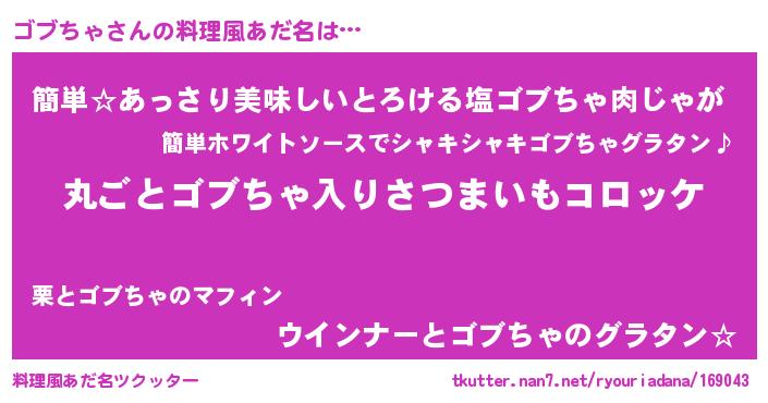 | ヘコむあだ名 | 『ゴブちゃ(小並感)』『なまこ酢』 |