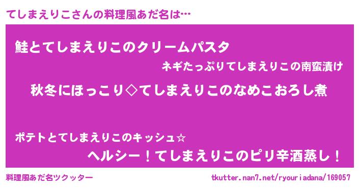 | ヘコむあだ名 | 『てしふぇ~』『てしを』『なまこ酢』 |