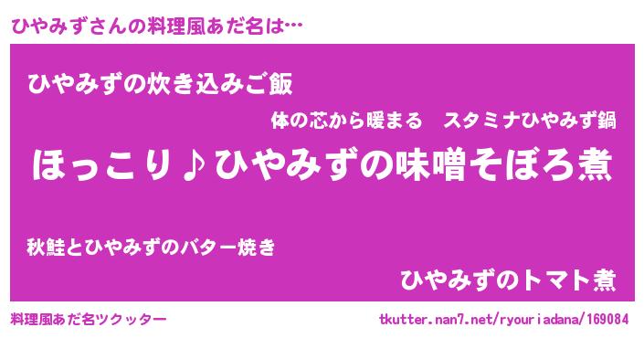 | 意味不明あだ名 | 『ペロリンひやみず』『永久保存ひやみず』 |