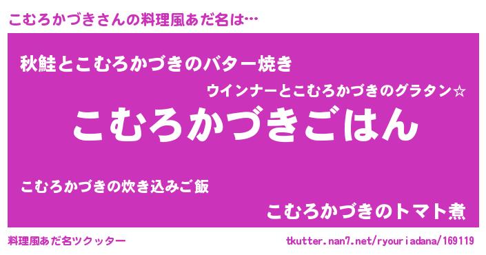 | ヘコむあだ名 | 『こむろかづき(遠い目)』『なまこ酢』 |