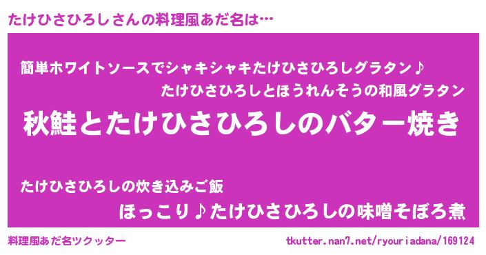 | ヘコむあだ名 | 『たけひさひろし(遠い目)』『たけを』 |