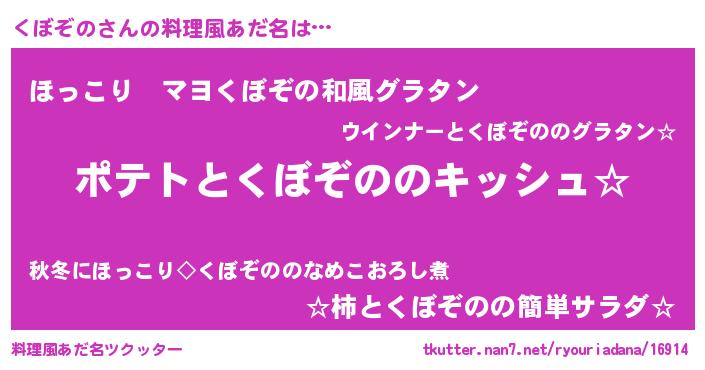| 男性向けラノベタイトル風あだ名 | 『くぼぞのの嫁は女の子じゃないと思った?』 |