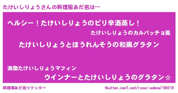 | ヒーロー風カッコイイあだ名 | 『最強戦士タケイシリョウ』 |