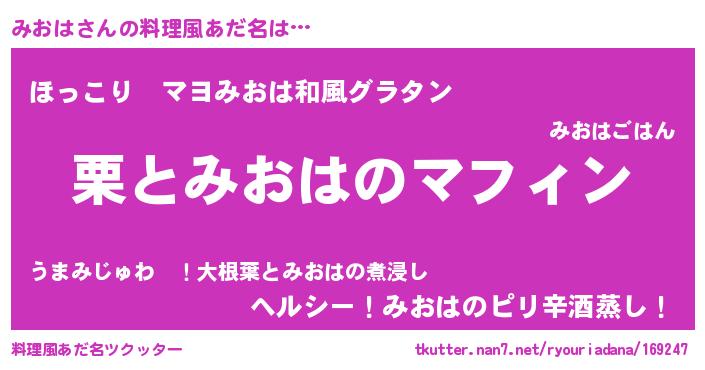 | ヘコむあだ名 | 『牛乳』『みおっふぃ~』『みおっ子』 |