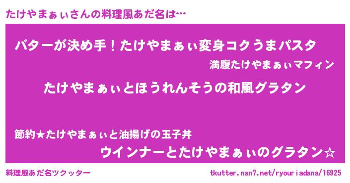 | 肩書あだ名 | 『たけやまぁぃ大佐』『たけやまぁぃ教頭』 |
