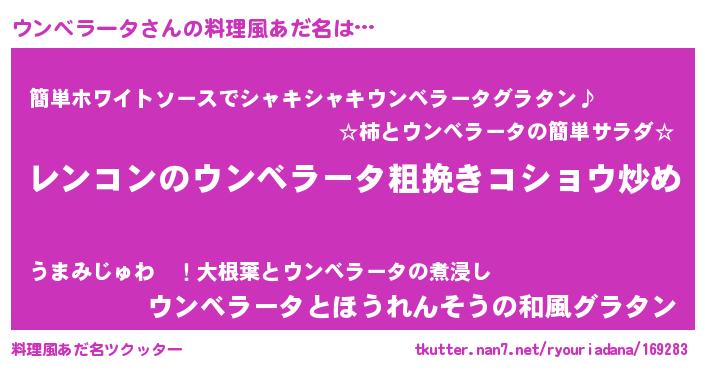 | 女子向けラノベタイトル風あだ名 | 『ウンベラータなんてお断りですっ。』 |
