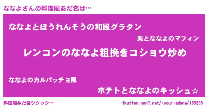 | ヘコむあだ名 | 『ななっぺ』『レバニラ』『ななにー』 |