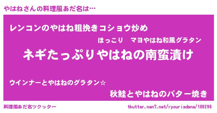 | 意味不明あだ名 | 『ペロリンやはね』『自称やはね』 |