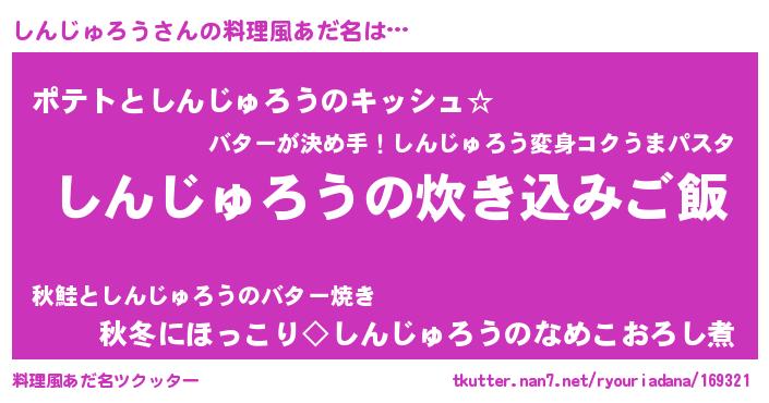| 男性向けラノベタイトル風あだ名 | 『うちのしんじゅろうが世界を掌握している!』 |