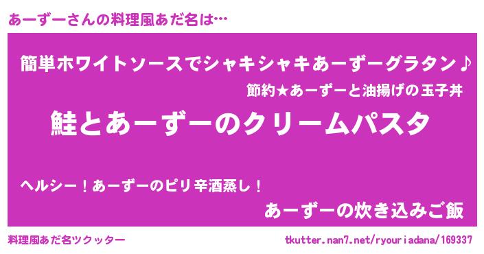| 女子向けラノベタイトル風あだ名 | 『死神あーずーの再婚』『闇のあーずー』 |