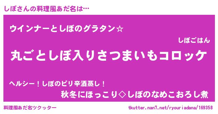 | 男性向けラノベタイトル風あだ名 | 『魔弾の王としぼ』『シボスレイヤー』 |