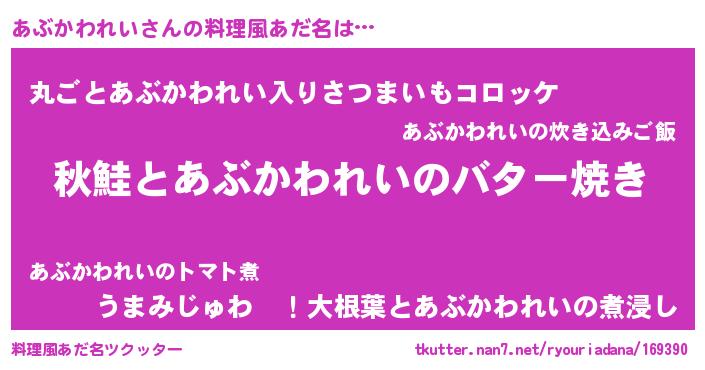 | ヘコむあだ名 | 『あぶかわれい(震え声)』『なまこ酢』 |