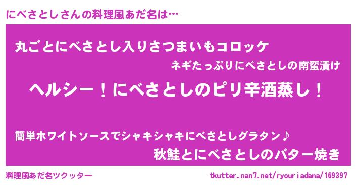 | 意味不明あだ名 | 『自称にべさとし』『永久保存にべさとし』 |