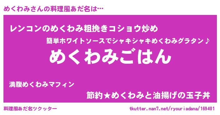 | 男性向けラノベタイトル風あだ名 | 『転生したらめくわみだった件』 |