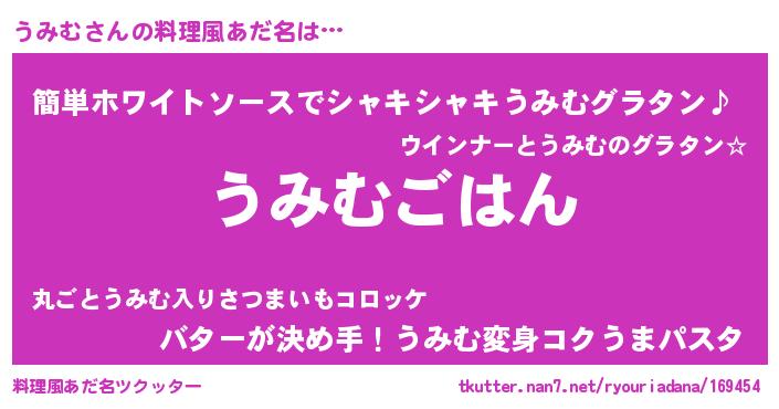 | 男性向けラノベタイトル風あだ名 | 『転生したらうみむだった件』 |