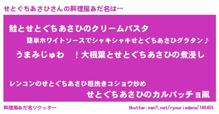 | ヘコむあだ名 | 『酢こんぶ』『せとっちょ』 |
