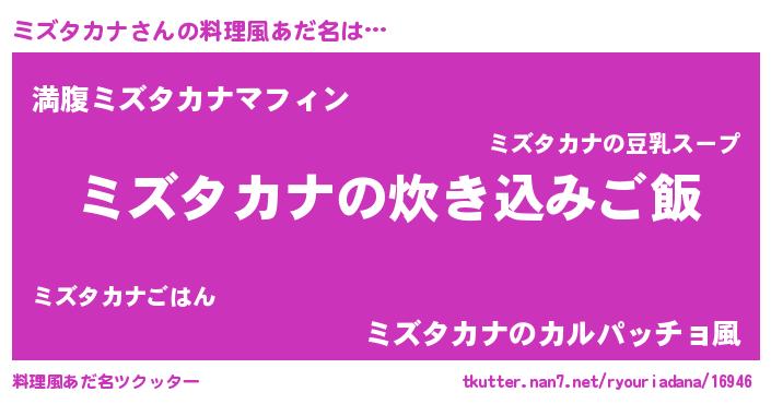 | 意味不明あだ名 | 『永久保存ミズタカナ』 |