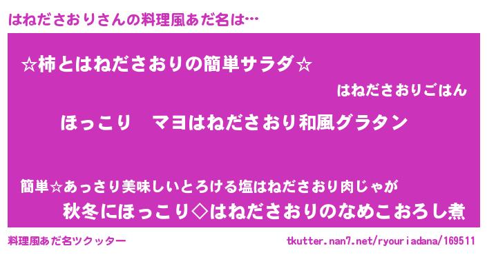 | 意味不明あだ名 | 『住所不定無職はねださおり(39歳)』 |
