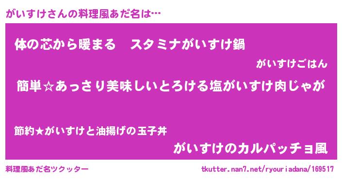 | ヒーロー風カッコイイあだ名 | 『ネオガイスケ』『ウルトラがいすけマン』 |