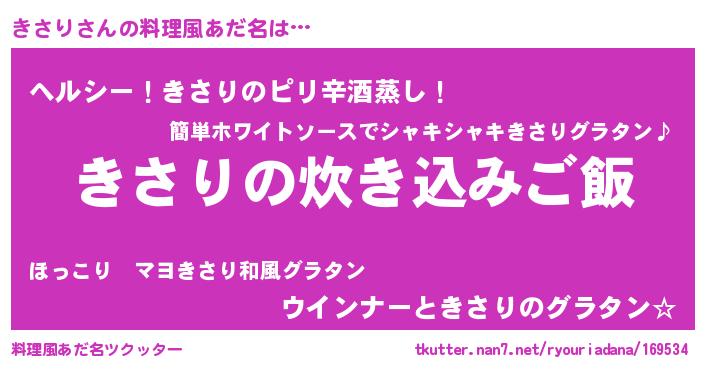 | ヘコむあだ名 | 『なまこ酢』『きさっぺ』『きさもー』 |