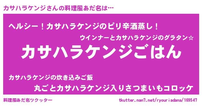 | 男性向けラノベタイトル風あだ名 | 『カサハラケンジスレイヤー』 |