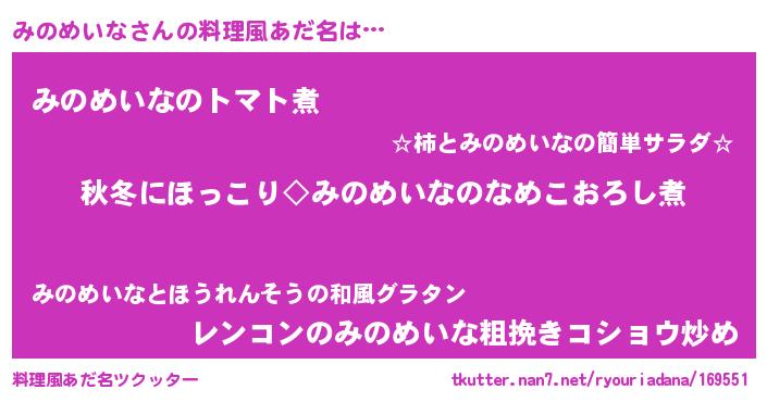 | ヘコむあだ名 | 『なまこ酢』『みのっ子』『みのもー』 |