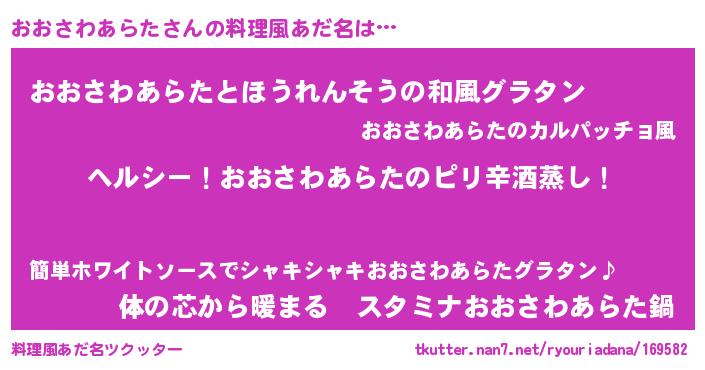 | 意味不明あだ名 | 『自称おおさわあらた』 |