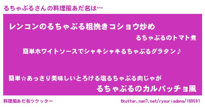 | 男性向けラノベタイトル風あだ名 | 『るちゃぶるの嫁は女の子じゃないと思った?』 |