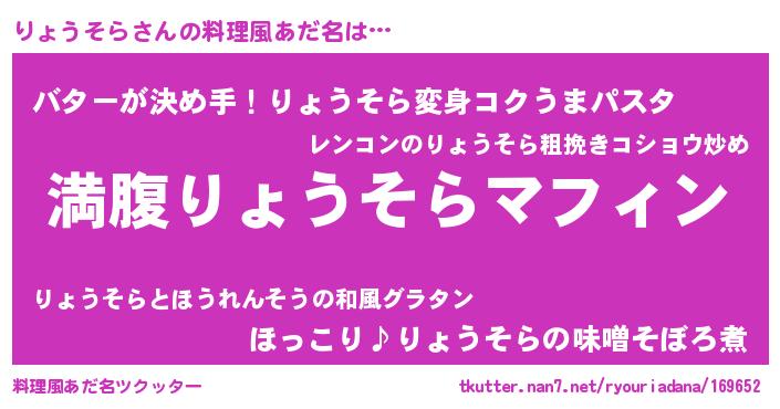| 意味不明あだ名 | 『永久保存りょうそら』『自称りょうそら』 |