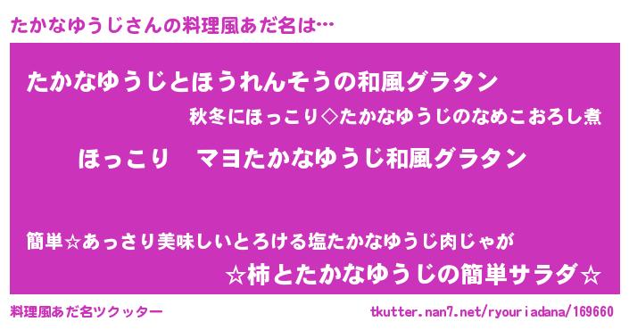 | ヒーロー風カッコイイあだ名 | 『仮面タカダー』『ネオタカナユウジ』 |