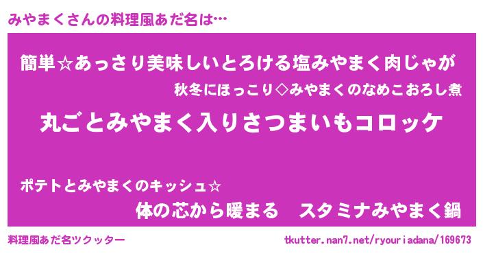| 意味不明あだ名 | 『住所不定無職みやまく(81歳)』 |