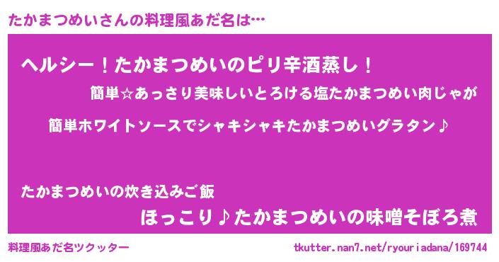 | 女子向けラノベタイトル風あだ名 | 『たかまつめい様がみてる』 |