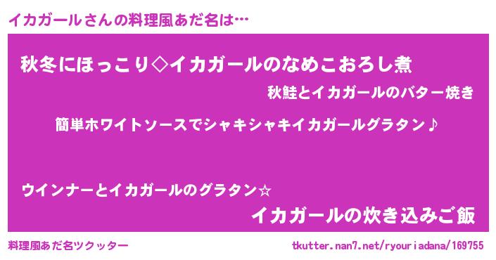 | ヘコむあだ名 | 『イカを』『イカガール(小並感)』 |