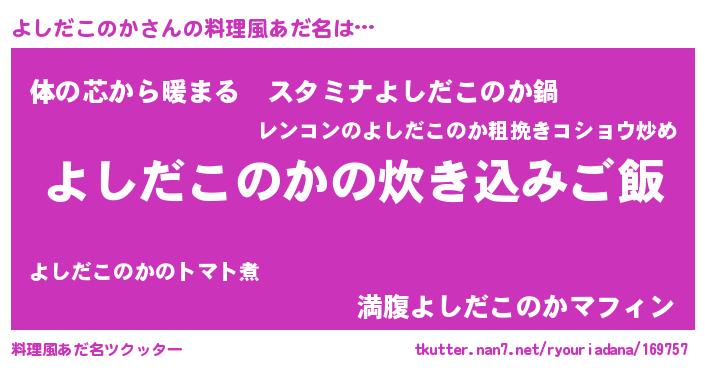 | 男性向けラノベタイトル風あだ名 | 『うちのよしだこのかが世界を掌握している!』 |