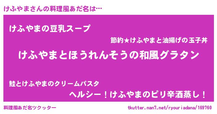 | ヘコむあだ名 | 『けふっぺ』『けふっふぃ~』 |