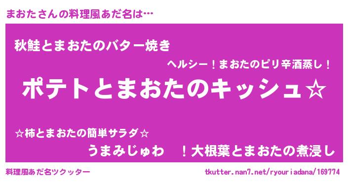 | 男性向けラノベタイトル風あだ名 | 『まおたの嫁は女の子じゃないと思った?』 |