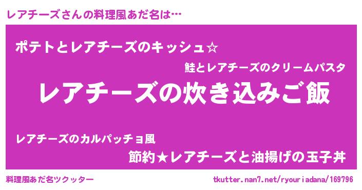 | 胡散臭い通販商品みたいなあだ名 | 『全米が絶賛したサプリメント…その名も「レアチーズ」』 |