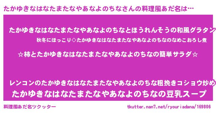 | 伝説のあだ名 | 『孤高の魔法使いたかゆきなはなたまたなやあなよのちな』 |