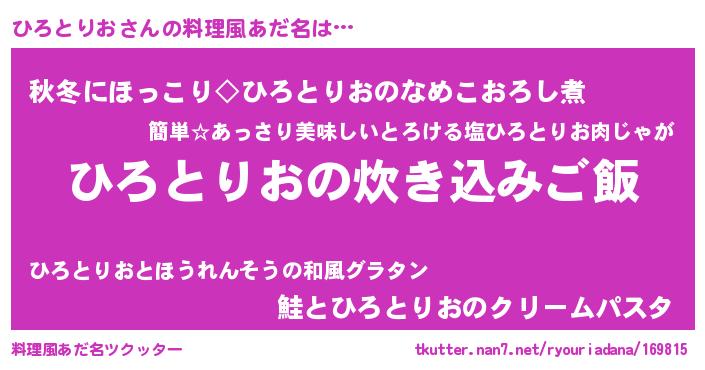| ヘコむあだ名 | 『ひろとりお(遠い目)』『ひろぷりん』 |