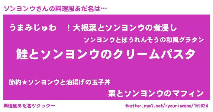 | 自動車の名前っぽいあだ名 | 『ソンR』『ソスラー』『ソンティマ』 |